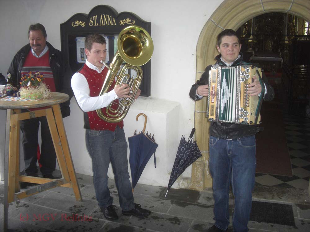 Dieses Jahr hielten wir unser traditionelles Ostersingen wieder in St. Anna ab. Unser Pfarrer erlaubte uns wieder die Kirche zu benützen, wofür wir uns auch auf diesem Wege aufs Herzlichste bedanken. Unsere langjährigen treuen Zuhörer hielten uns trotz strömenden Regens und niedrigen Temperaturen wieder die Treue. Das Konzert, das wie jedes Ostersingen wieder viele neue Lieder beinhaltete war sichtlich ein voller Erfolg, und wurde von den Zusehern mit viel Applaus gutiert. Ebenfalls gut angekommen sind die "2 Lustigen" die unseren Auftritt mit flotter Musik umrahmten.